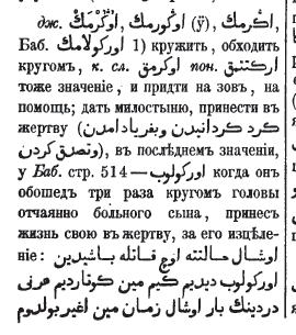 1) dönmek, 2) çığlık atmak ve ağlamak, inlemek