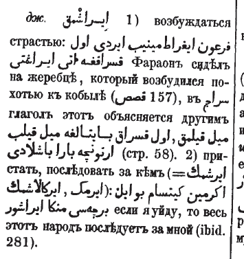 1) ehtiros bilan berilmoq 2) birovga ergashmoq