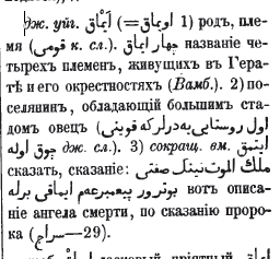 1) oila, qabila 2) ko'p qo'ylari bor odam 3) aytmoq, rivoyat
