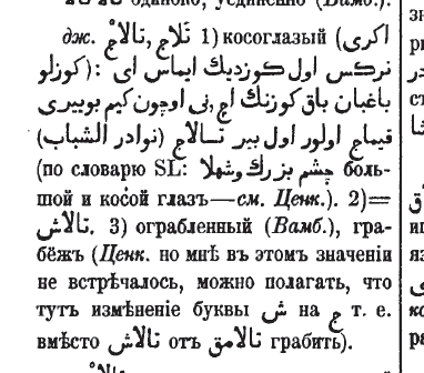 1) g'ilay 2) تالاش 3) o'g'irlangan, o'g'irlik