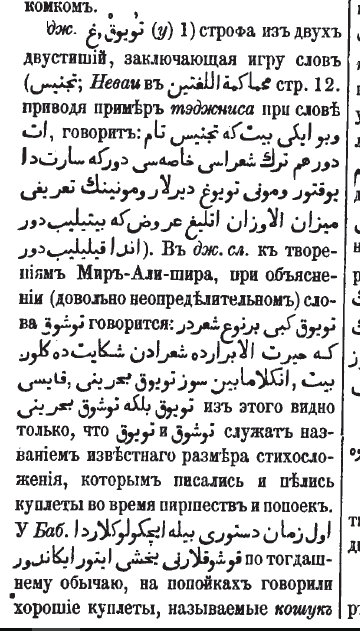 1) so'z o'yinidan iborat bo'lgan ikki qatorli she'riy bayt 4) to'la, juda