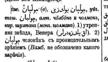 1) tonggi yulduz, Venera (Cho'lpon yulduzi) 2) o'tkir qarashli odam